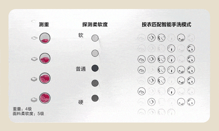 ▲滚筒内采用了错落式的不锈钢提升器设计,前后错落,设计的目的是为了减少洗衣过程中对衣服的纤维损伤,模拟人手工洗衣时的各个步骤