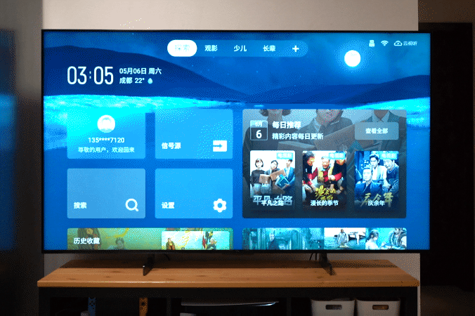 实测在电视系统快速切换内容,页面可以快速切换和更新相应内容,反应十分迅速流畅,可以说丝滑至极。得益于电视支持WIFI6网络,网络资源也可以快速进行更新,使用遥控器快速切换也能轻松找到自己需求的资源。
