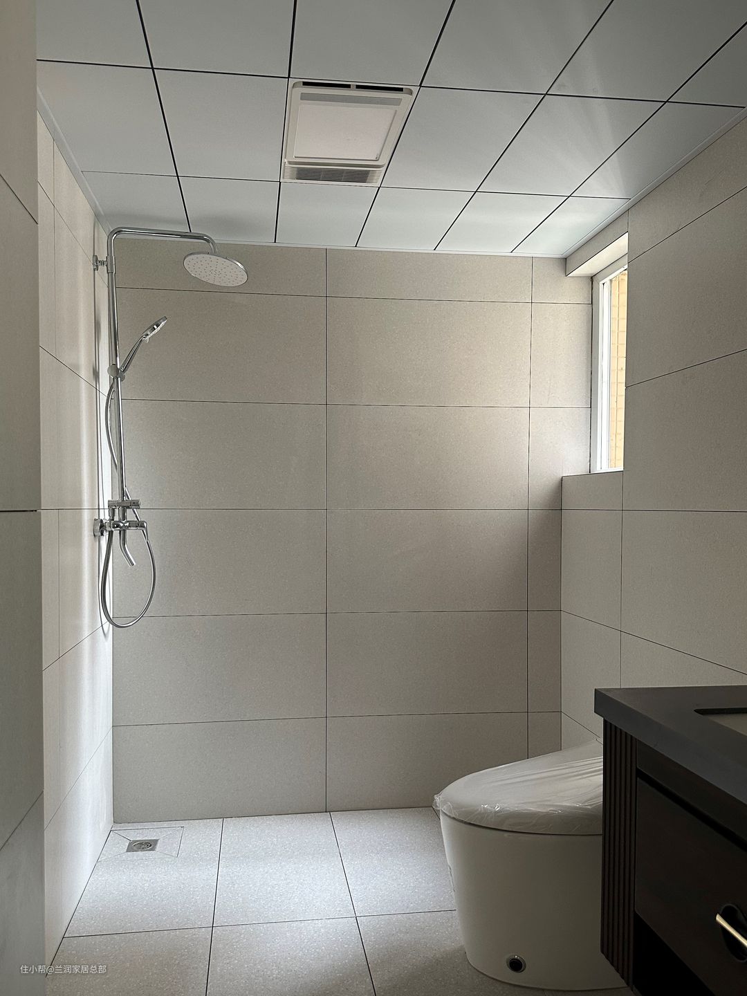 对于面积比较大的卫生间来说,使用大尺寸的瓷砖,例如600*1200、750*1500,视觉上更加大气、更具质感。