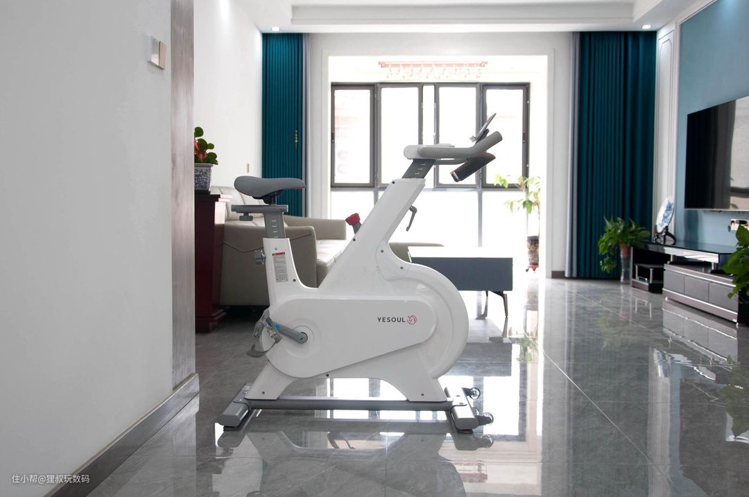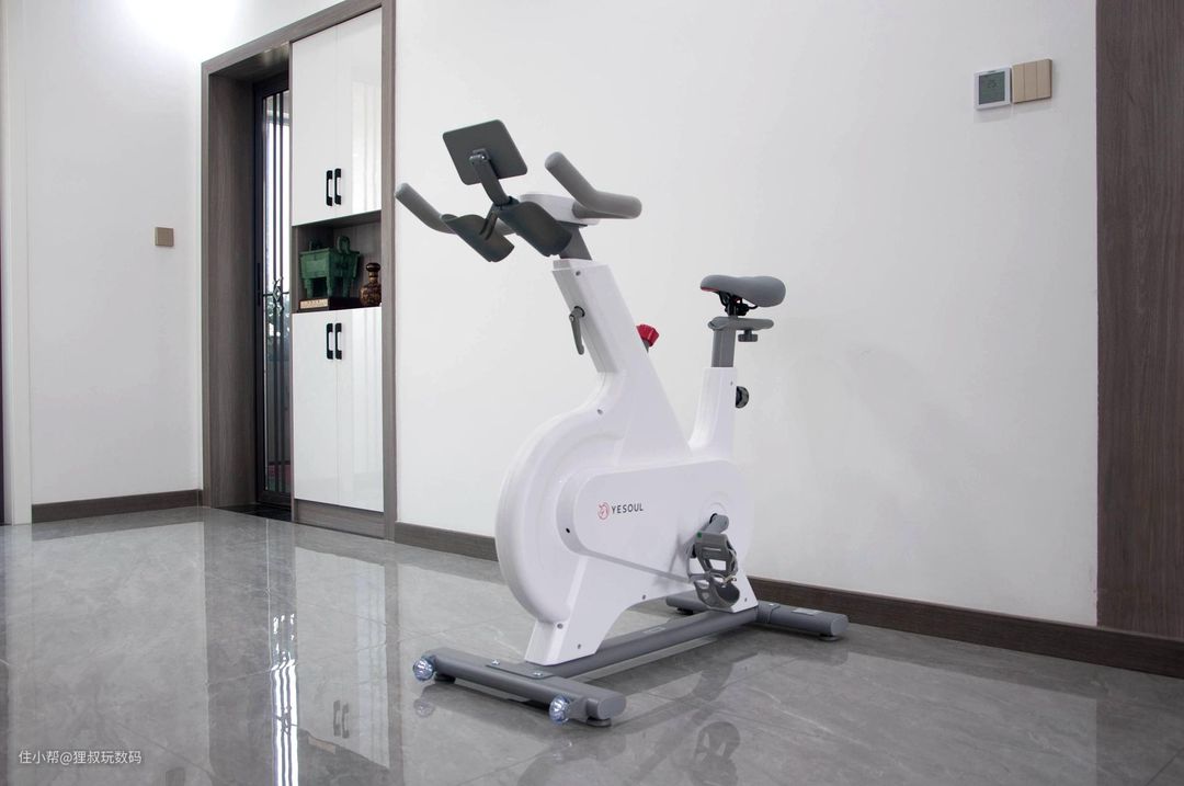 我把它摆在了客厅和餐厅中间的靠墙位置,刚好对着电视屏幕,试想一下,一边骑车健身,一边追剧岂不惬意得很。这款动感单车整机净重30kg,自带两个滚轮,就算是媳妇自己在家也可以轻松移动,变更使用位置。野小兽自发电动感单车Power的车身依然采用了白+灰配色,整车全包工艺打造,线条简洁流畅更显大气,特别是红色旋钮更是点睛之笔,让人一眼就爱上,无论从哪个角度看都很百搭。