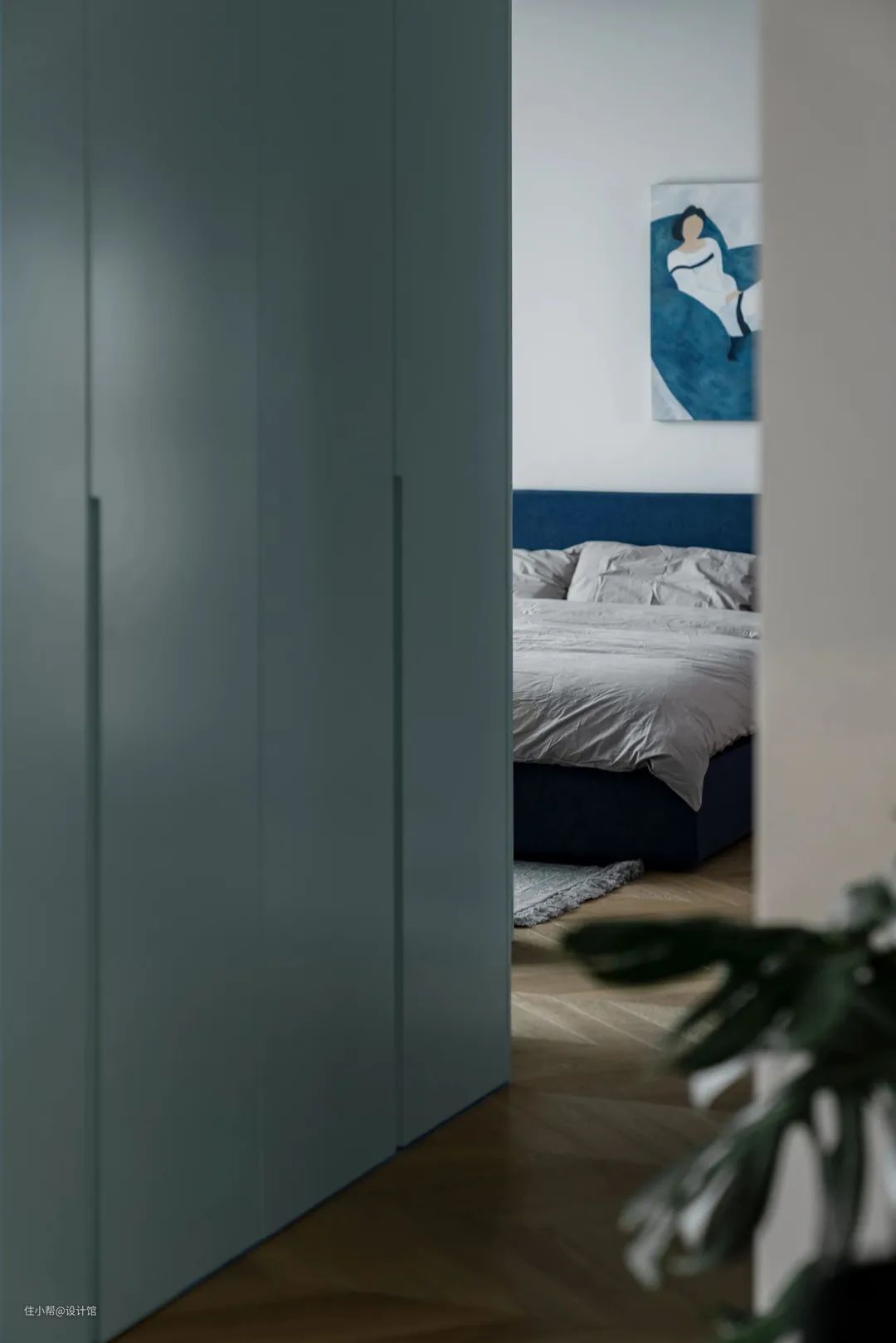 ▲梳妆台所在的墙壁被涂上了深蓝色的漆,这种颜色不仅能够清晰地划分出空间的功能,还能够与床的颜色形成一种和谐的呼应。这种深蓝色的墙漆给整个房间增添了一份高雅和神秘感,让人感到舒适和放松。