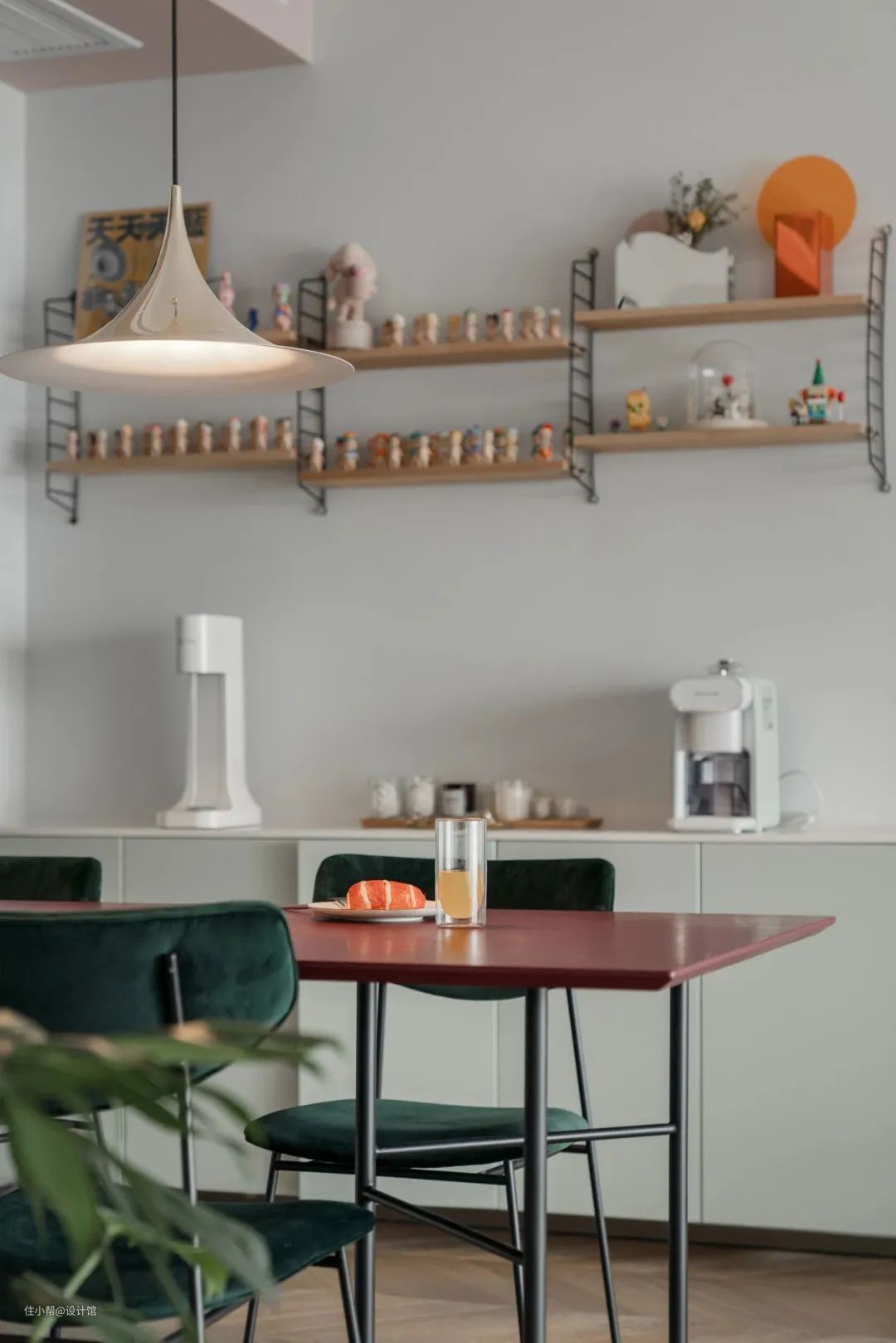 ▲半高餐边柜上的搁架上陈列着屋主的收藏品,包括各种手办、盲盒等。这些小巧玲珑的物品,不仅仅是简单的装饰品,更是屋主的心头好。每一件手办都有着属于自己的故事,每一个盲盒都有着属于自己的惊喜。