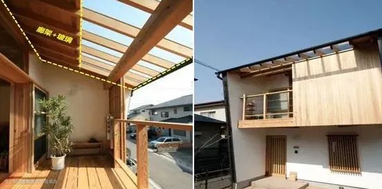 日本民宅中比较常见这种顶部廊架+外侧可移动封板的设计,能够双向采光、通风,但更适合自建房,国内更多是部分借鉴了可移动封板的设计。