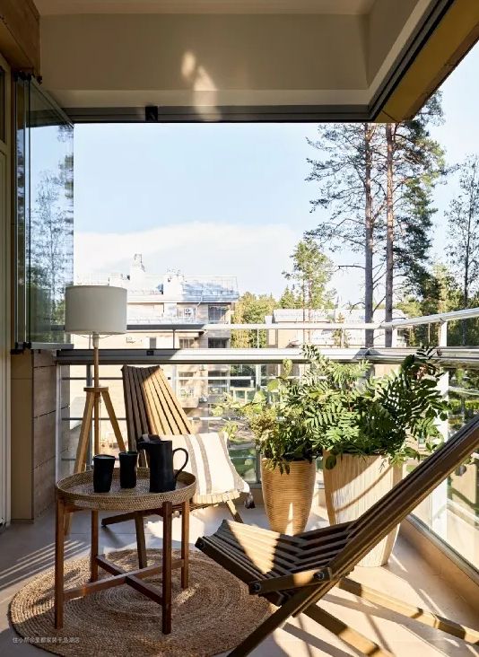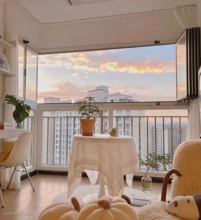 窗户封一半也能实现“双阳台”的效果,日常开启刮风下雨时关闭,空气新鲜、采光绝佳,摆上躺椅、茶几,随时可享受户外时光。