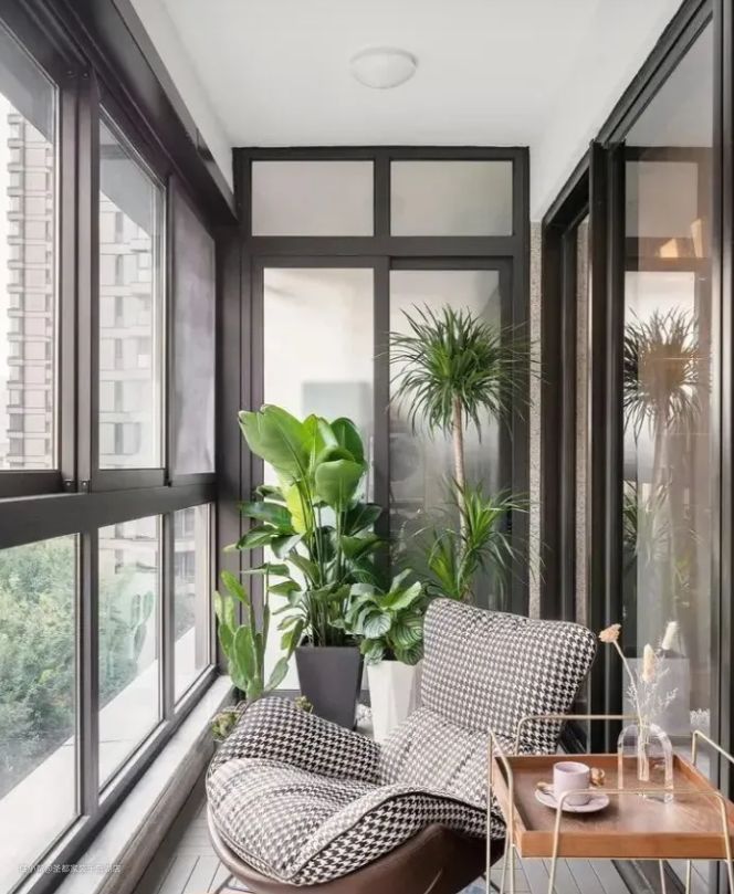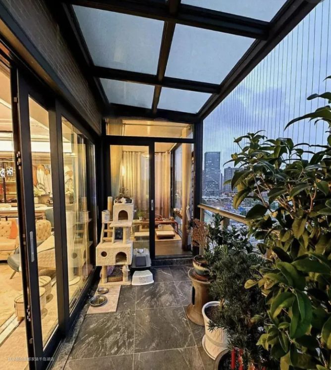 直接在阳台护栏边装推拉门、折叠门,开启幅度大,与开放式阳台体验相差无几,除了贵没毛病。