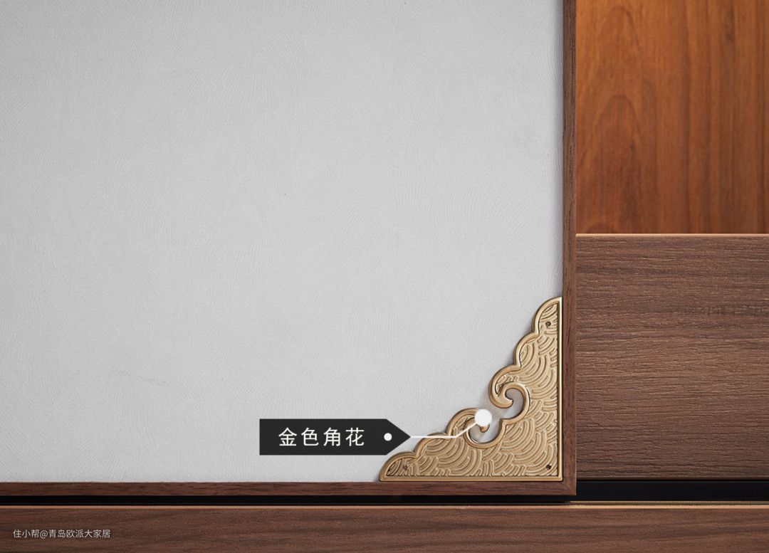门型四周以金色精致角花点缀,刚柔结合,尽显非凡的品味与格调。