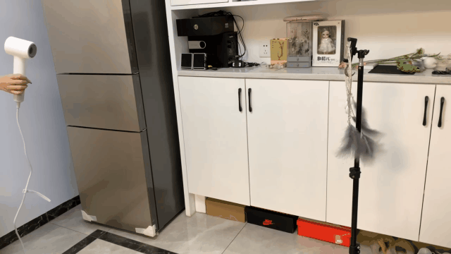 这里做一个简单的“磁悬浮”测试,吹风机一直在摆动,说明风力非常大,也别看小这个东西,你就想象我们坐的磁悬浮动车吧 ②温控 还有它的智能温控也是深深的折服了我的女朋友,女朋友用之前的吹风机被烫到头皮好几次,还要不停地变换位置,而且还时不时能闻到头发的烧焦味,每次出门前洗头又是一顿抱怨,连带着我也要等好久