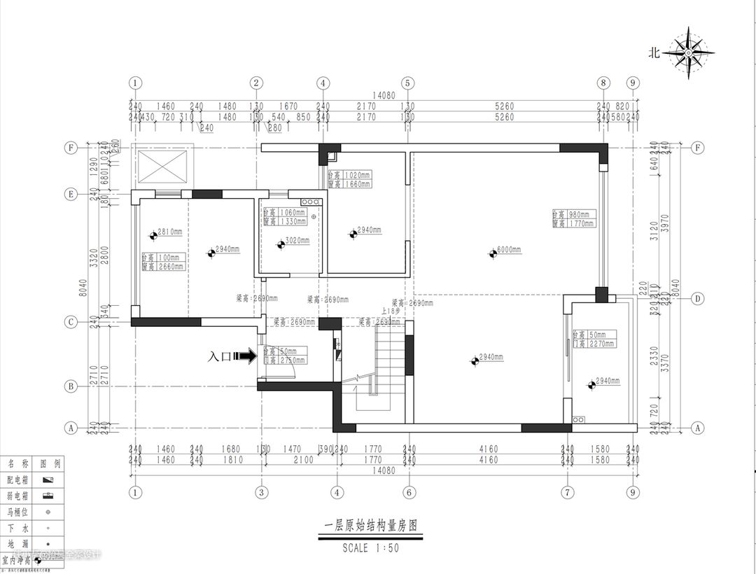 1、原始户型的进门转角过来正对卫生间,且采光不佳,经过拆改规划后,改变了楼梯位置,重新梳理出玄关空间动线。