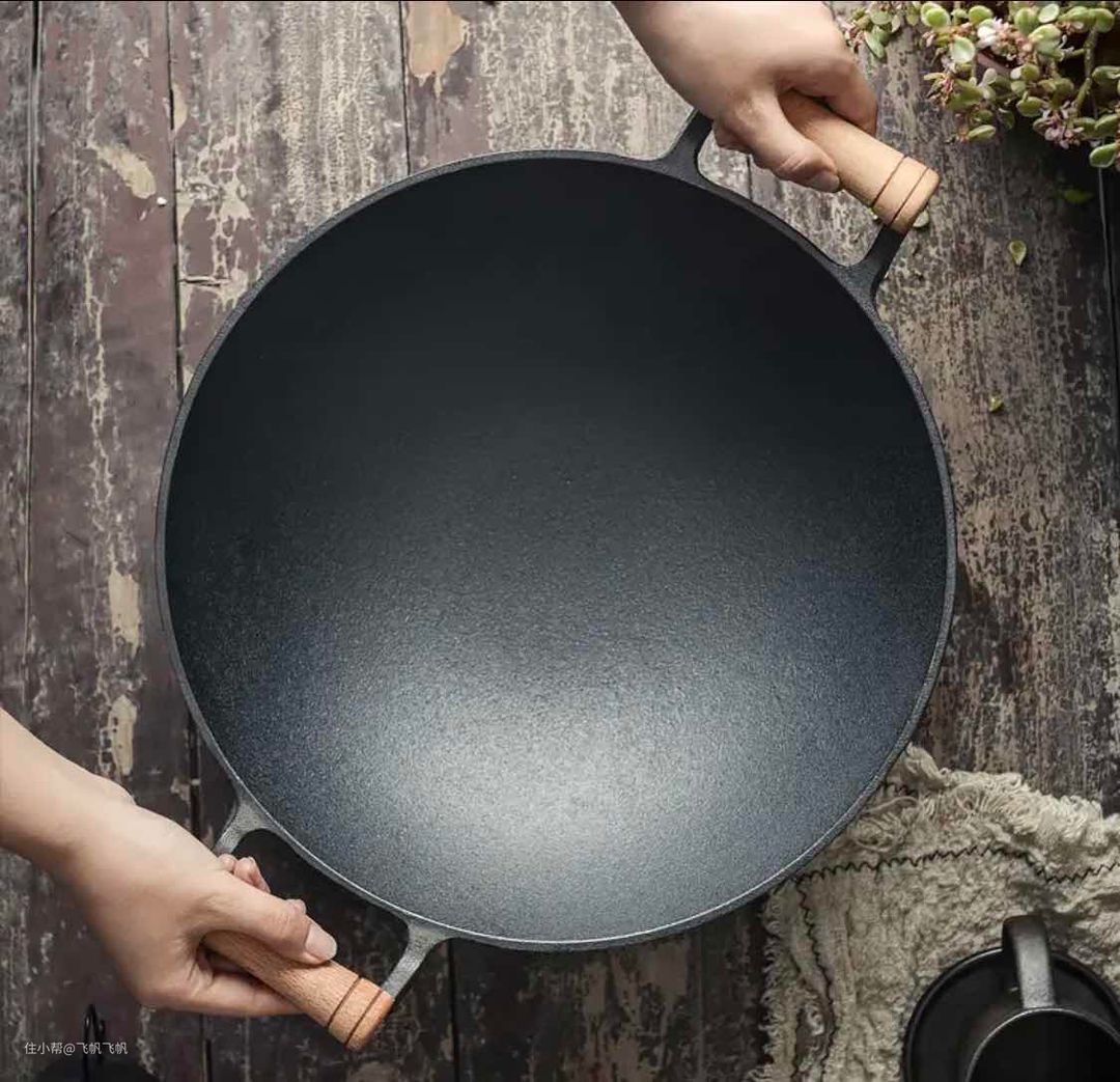 铁锅分很多种,根据原材料含碳量的不同,可以分为铸铁、生铁和碳钢三种锅。