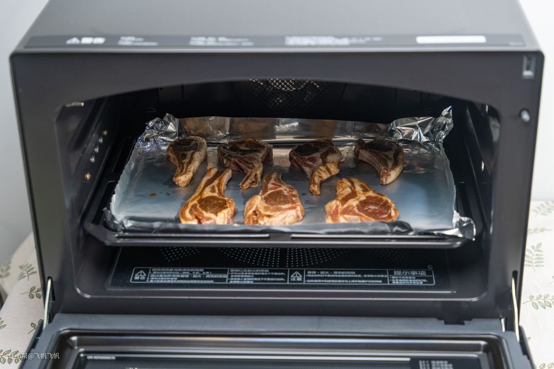 用传统烘焙烤制一个滋滋羊排为例子,把羊排恰当腌制一个晚上,然后摆盆放入XD5000的下层,开启200°C并烘烤20分钟。