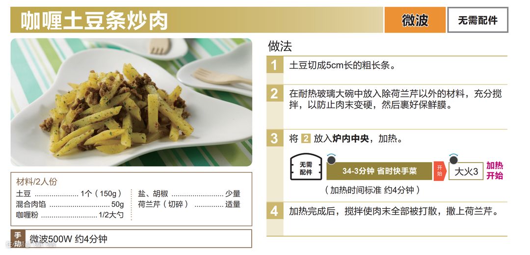 大家也可以注意看东芝的菜谱,从食材的量、到做法、到在XD5000中的位置以及菜单数字都标得很清楚,简单易懂。