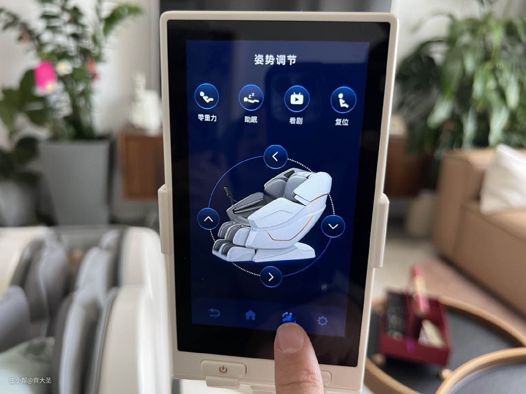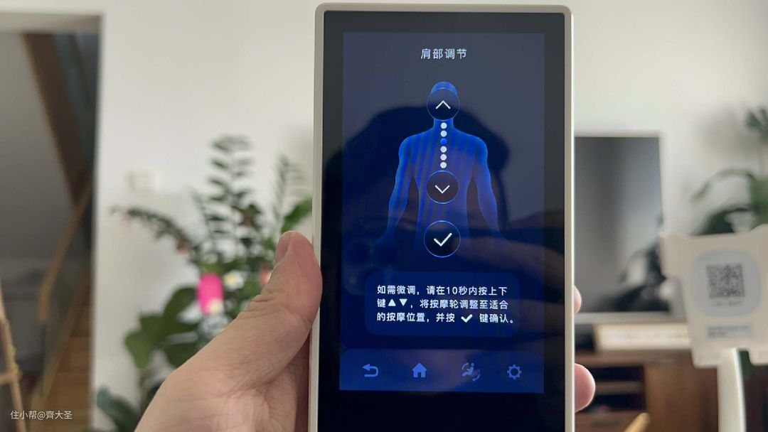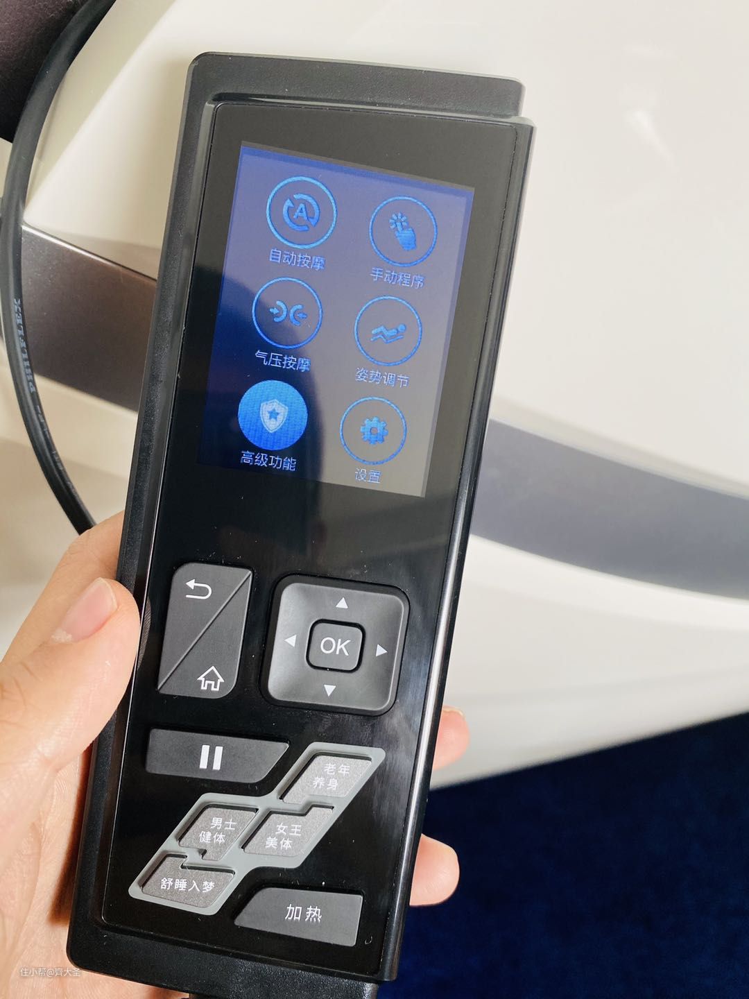 不过这里我还是想提几个改进建议,一是这个遥控器的支架的距离有点远,我老婆身高1米7,按摩的时候操作支架上的遥控器还是有点吃力的,而且眼神不好的话这么远也看不清屏幕呀