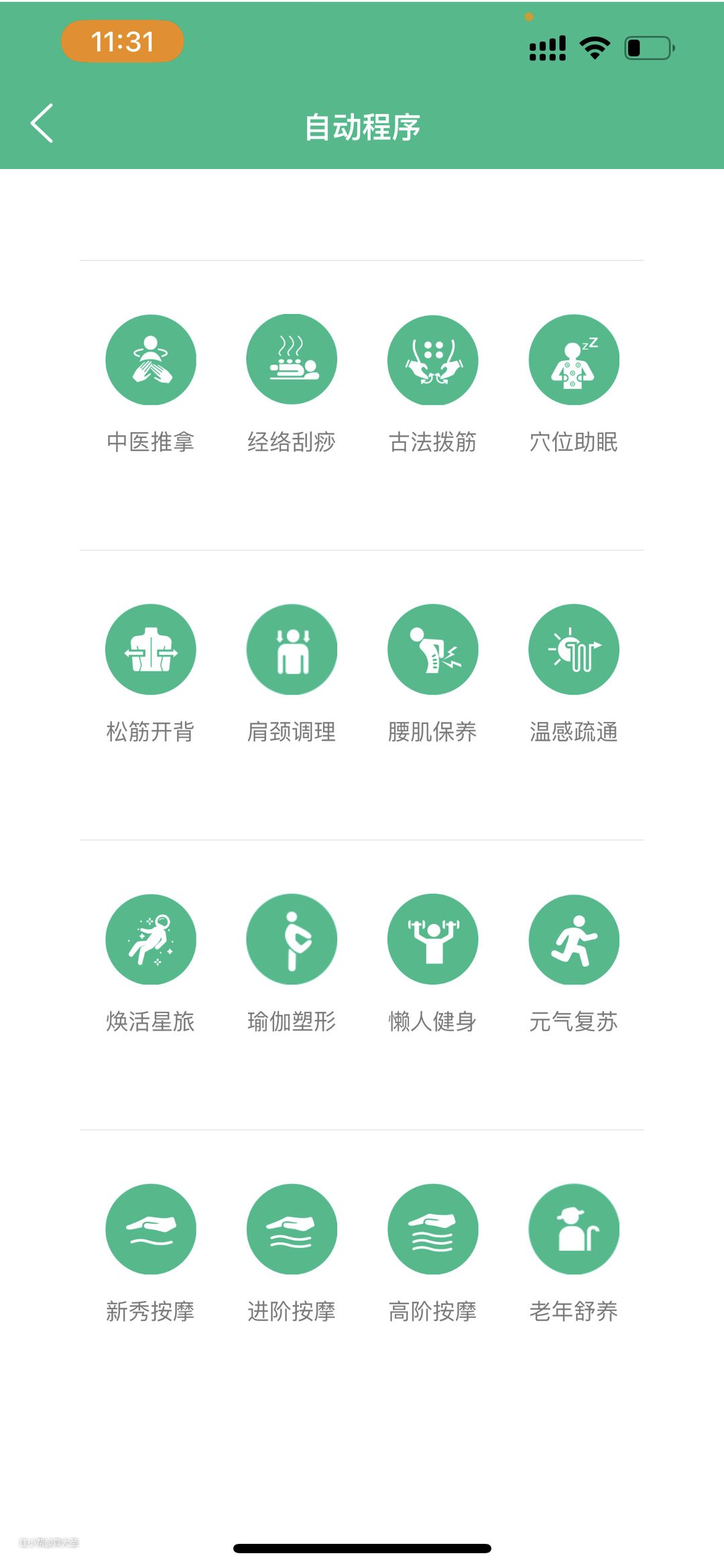 内置16套大师精选程序,对于初用者可以简单高效的根据自己的使用需求快速选择按摩程序。