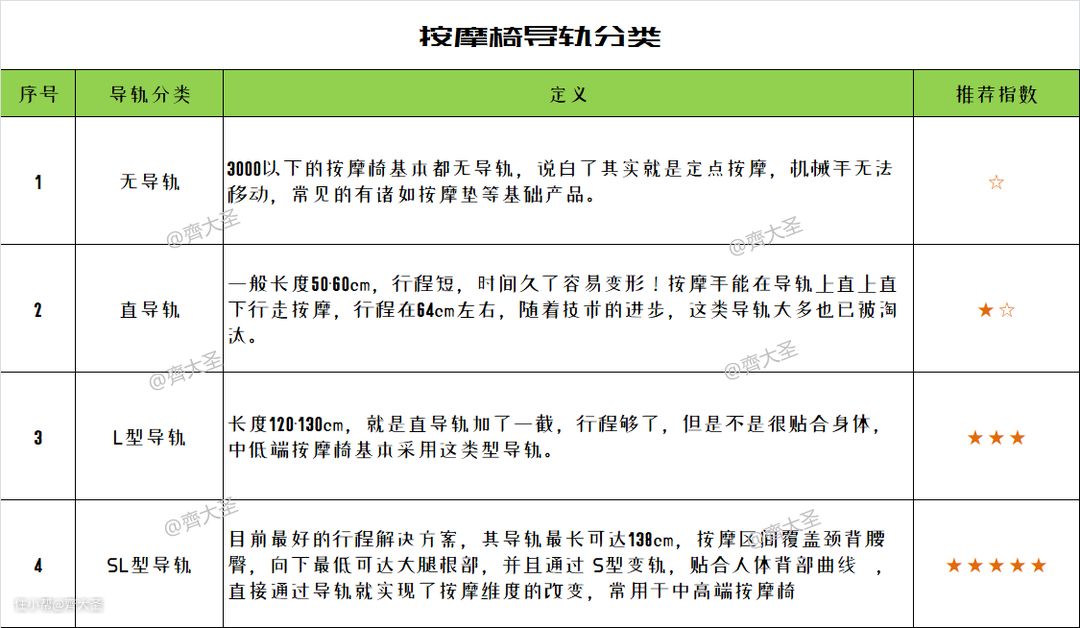 导轨的作用主要供机芯在上面移动,从而达到按摩身体各个部位的目的!前文也提到了2D以上的机芯均需要导轨的配合才能实现多维度的运动。导轨的好坏直接决定了使用感受,所以也是非常重要的选购点。