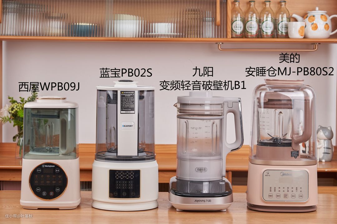 说是说得这么好听,那到底实降噪效果跟使用体验,这些静音破壁机表现到底怎么样呢,这期我找来了四款静音破壁机热销品牌的旗舰机型来测试,分别是九阳B1、美的安睡仓、西屋J7、蓝宝PB02S,看看它们的表现到底如何。