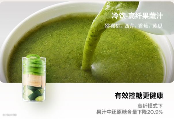 有了这个模式,全家不同的健康需求都能满足。像是宝宝辅食或者喜欢细腻口感的家人,可以选择细腻模式,饮品细腻顺滑,不糊嗓子;如果是健身、减脂人群,或者是需要控糖的高血糖家人,则可以选择高纤模式,让食物的饱腹感更强,压低饮品的升糖指数。