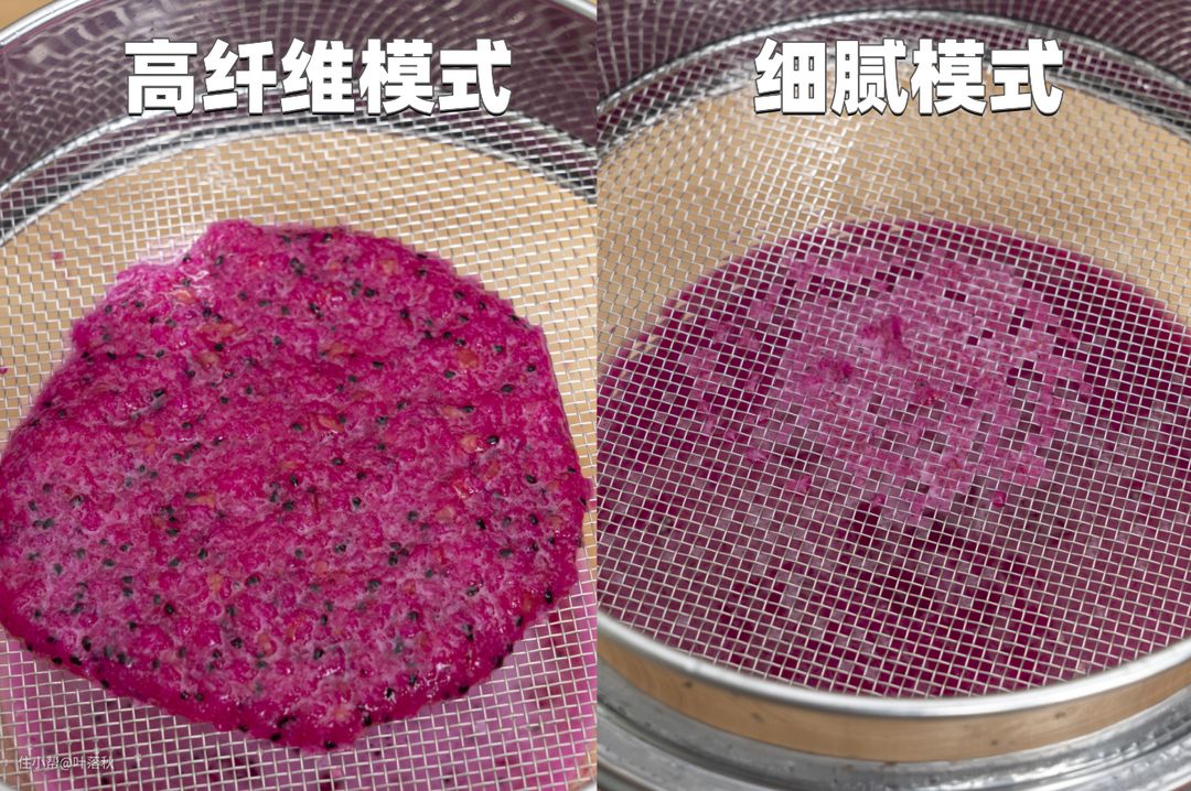 细腻模式下,火龙果的黑色籽都被搅打成超小的细颗粒。