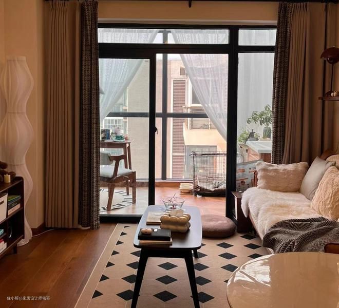 客厅和阳台之间没有打通,安装了隔断玻璃,这样室内能有更好的保暖和隔音效果。