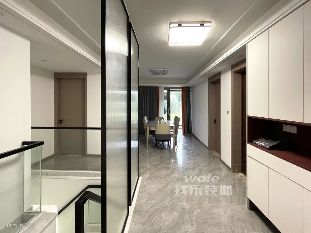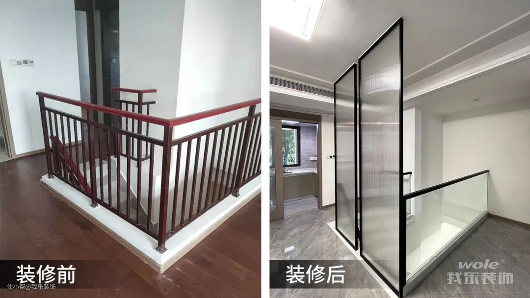 楼上半高护栏也变成了水晶玻璃门屏风,既提升了颜值,也增加了安全性。