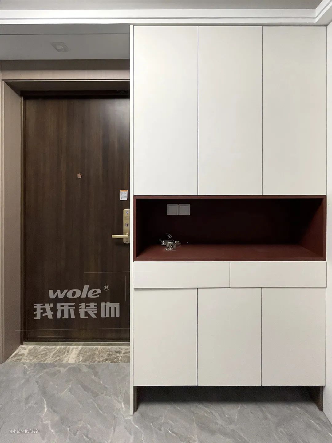精装房基本都没有收纳功能,科学规划收纳空间,安装定制柜体,成为改造的重中之重。采纳业主的建议,选择清爽色系为空间减负。