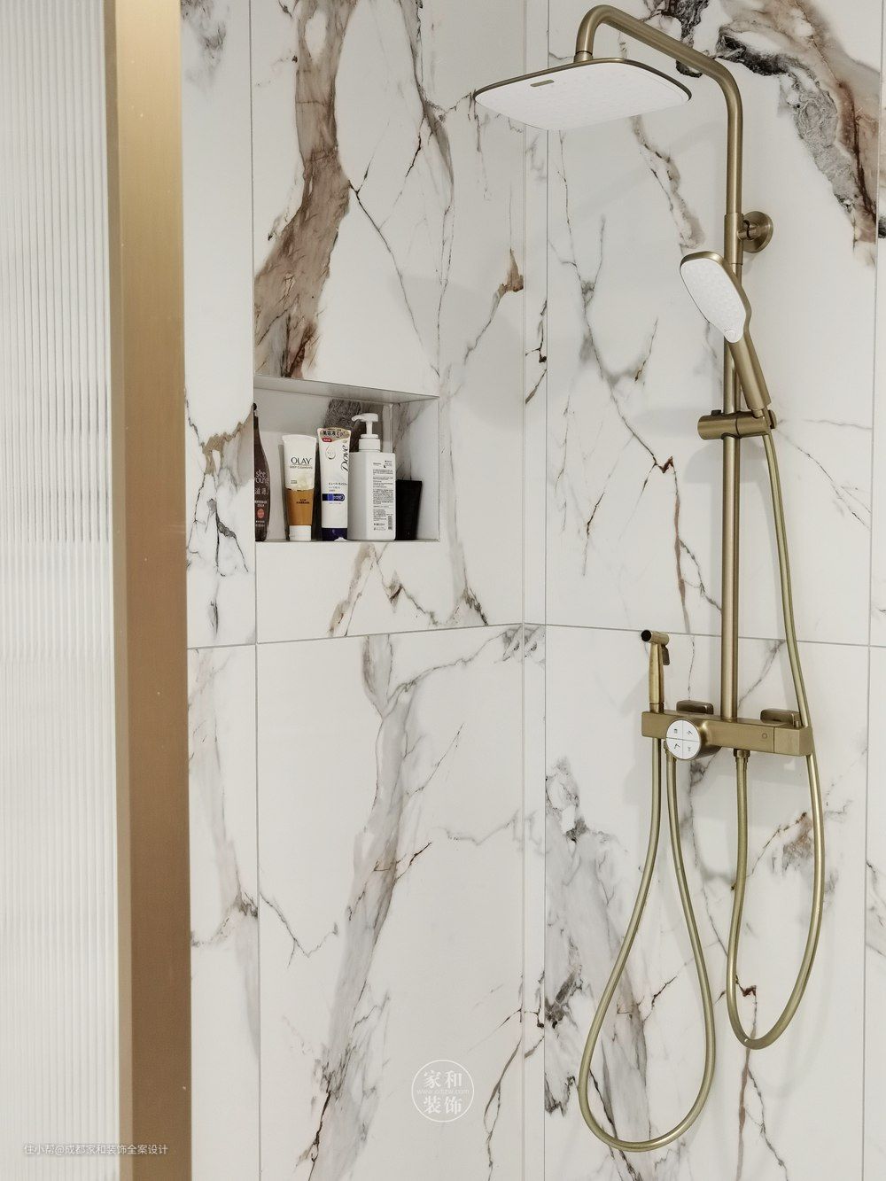 暗装花洒看上去要简洁很多,喜欢极简风格的朋友可以选择暗装花洒,颜值没的说。暗埋出水口与地面距离应为2.1米,淋浴开关中心距与地面最好为1.1米。