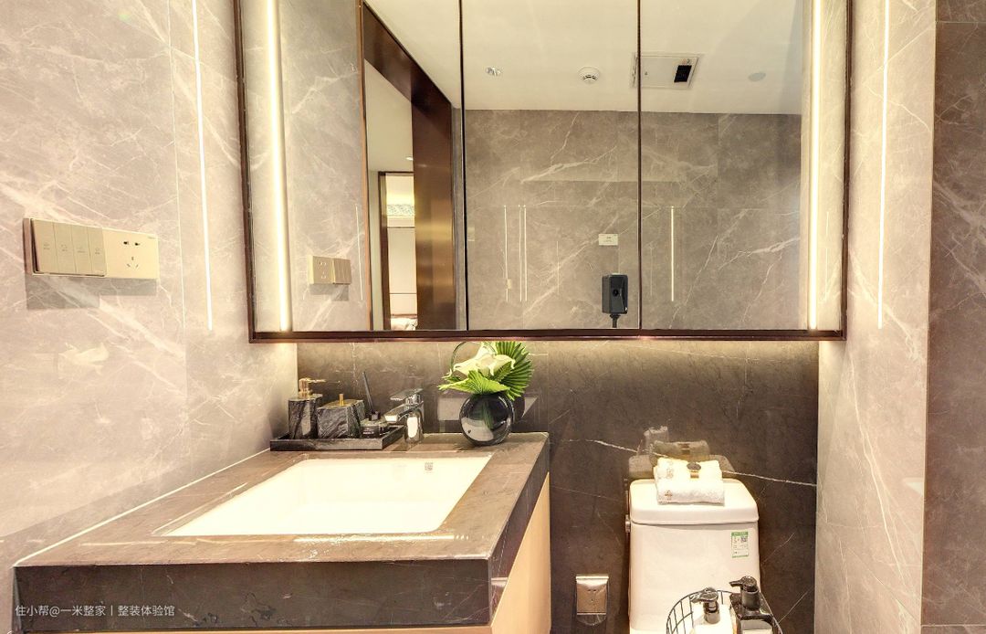 1.简约设计:小空间需要更精简的设计,这也适用于卫生间。精选简单的卫浴设备,把空间布局尽量简化,让卫生间看上去更宽敞。