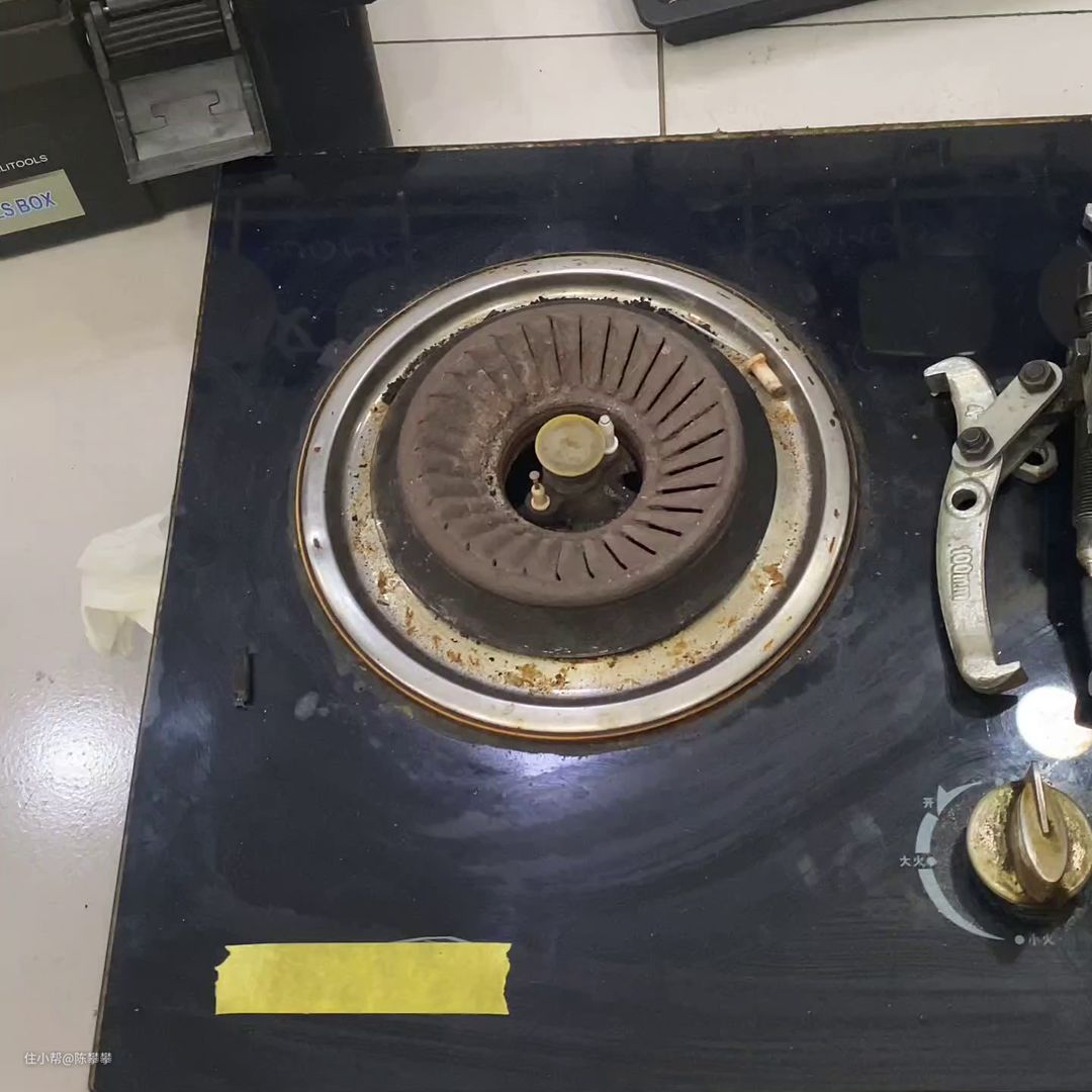 像这个已经生锈的特别厉害,现在怎么拆火盖都拿不掉,火盖拿不掉里面的螺丝就更拆不下来了,用什么方法可以把火盖轻轻松松拆下来?今天介绍一个非常好用的工具。