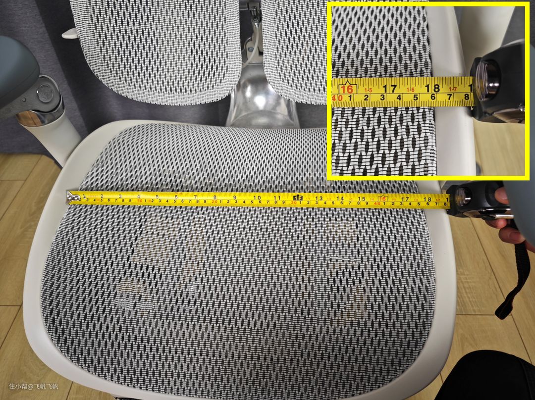 S300是采用坐垫框夹住网布,而且为了更有包裹感以及不让用户坐歪,边缘直接是网上凸起,坐垫测量宽度为45CM,实际能用的坐垫应该是44CM。