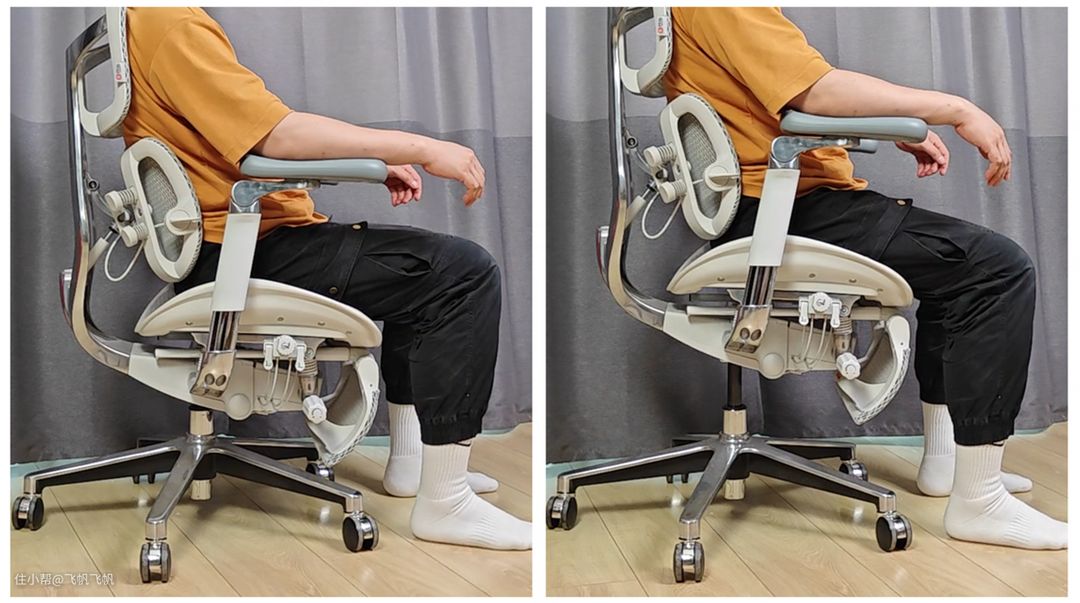 坐在椅子上时,人体不停变换动作也导致底部的压力点不停改变,缓震坐垫除了减压外,提供一定角度的随人体移动也是增加舒适性的关键。