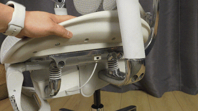 S300坐垫与底座的四个连接点加入了弹簧作为缓冲,技术为参考汽车的四轮避震设计,目的是在人体坐下去瞬间可以起到缓震作用,同时日常使用也能给予足够的舒适性。