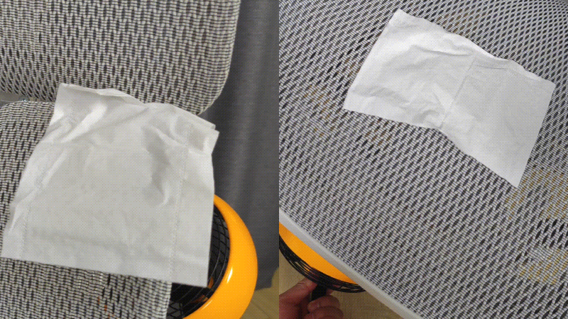 老美在能源上的丰富程度,用电还是比较放纵的,这种坐垫特点是透气性弱,无论是椅背还是坐垫,用我手上的风扇隔着坐垫吹餐纸是不动的。