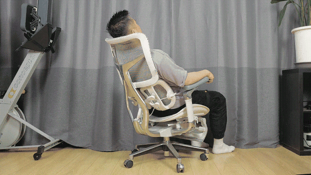 后仰开始下压时人体正坐状态往后压的力量较大,椅背的支撑力适中就好,既能让人下压不要太费劲,又能在坐的时候随意悬停;而躺下要起来时,人体往前的力量较弱,则需要椅背提供较大的支撑助力。