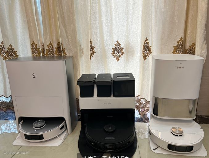 测试的产品有:石头G10SPRO、科沃斯T20 PRO、追觅S20 PRO,从左到右依次是科沃斯T20 PRO、石头G10SPRO、追觅S20 PRO,以下用 石头科沃斯追觅简要代替。