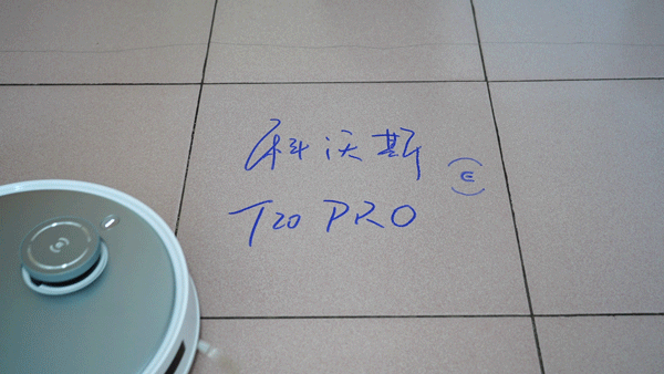 不过这也不算夸张的,阵主用马克笔在地面上写了几个字,看看T20扫地机是否还能这么轻松地打扫干净呢?经过下图测试,发现还是非常简单的。