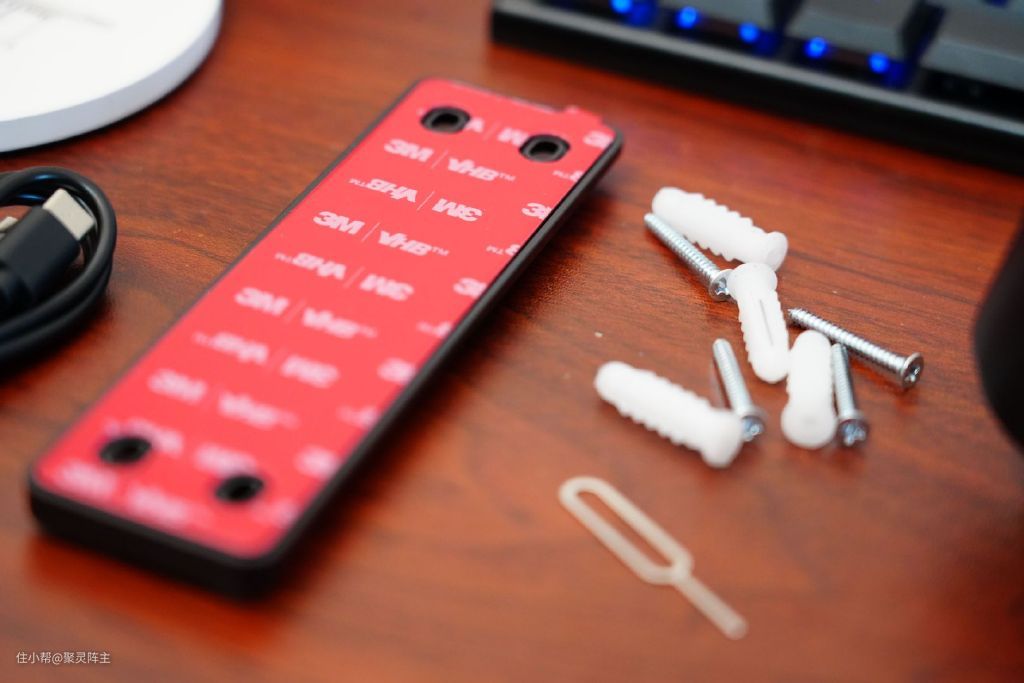 门铃室外机的安装可以用底座自带的3M胶,也可以用包装中配备的膨胀螺丝,根据自己的需求进行即可。