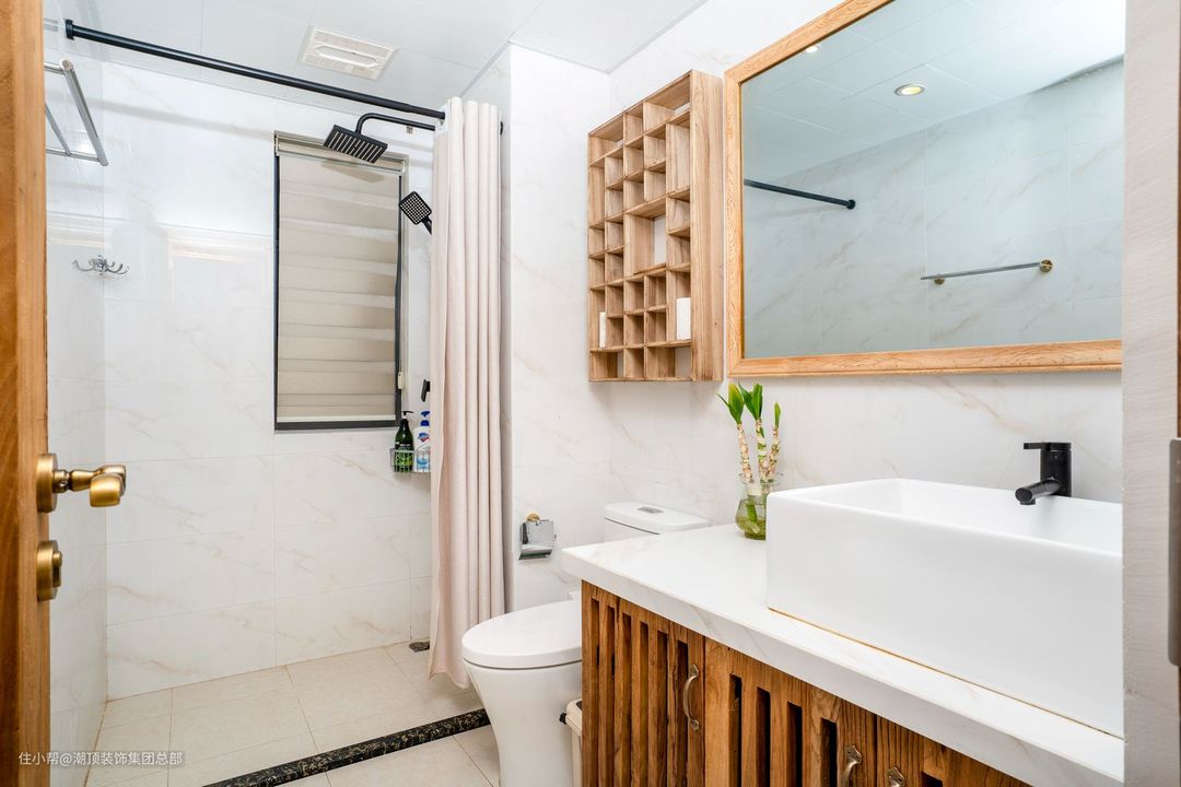 卫生间三大独立功能,满足日常需求,卫生间在视觉上也进行了减法,整体用微水泥包裹,门口没有入口,让空间更加开阔清爽。#卫生间#台盆柜#浴室镜