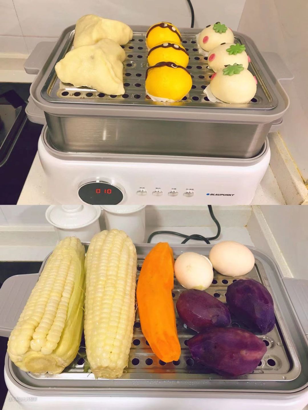 如果是给家有小朋友做早餐,这上蒸下炖就非常方便了,上层蒸点包子,鸡蛋,下层炖一碗粥/汤,营养又美味。