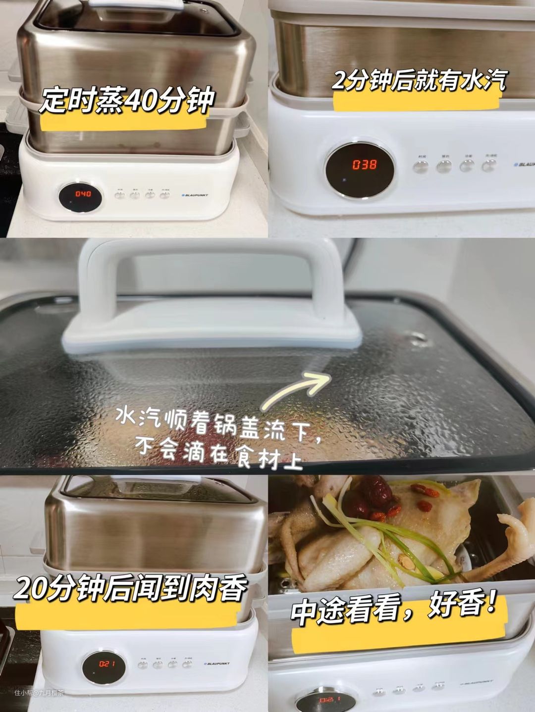 功能:蒸/炖不串味,预约,定时,保温,缺水保护,还有消毒功能