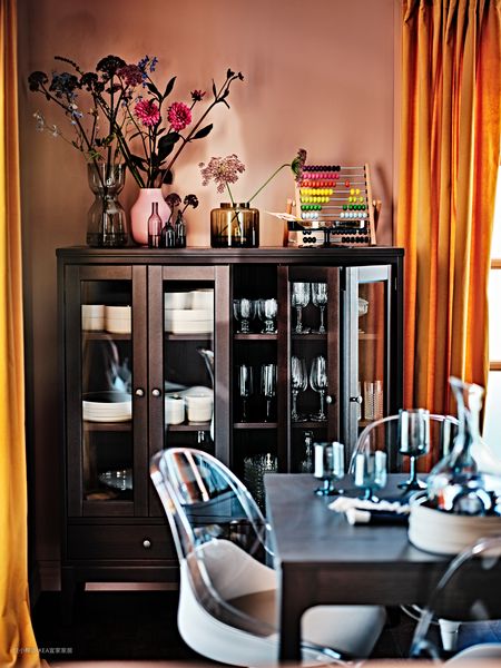 宜达奈餐边柜带有三层隔板和两个小抽屉,优雅复古的双折玻璃柜门,既能将收藏的貌美餐具展示出来,还不用担心落灰,减轻清洁负担。