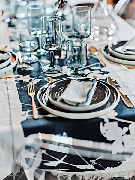 涟漪般的花纹,从餐盘中心像四周一圈圈晕开,将大小不同的两只餐碟叠放在一起。五星级餐厅同款餐桌布置,在家也能拥有!