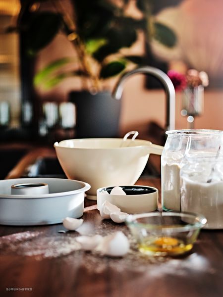 底面带有防滑橡胶的搅拌碗,烹饪时不容易扣翻。细长的导流口方便倾倒,还可以用作把手,用它搅拌面糊、清洗蔬菜都可以~