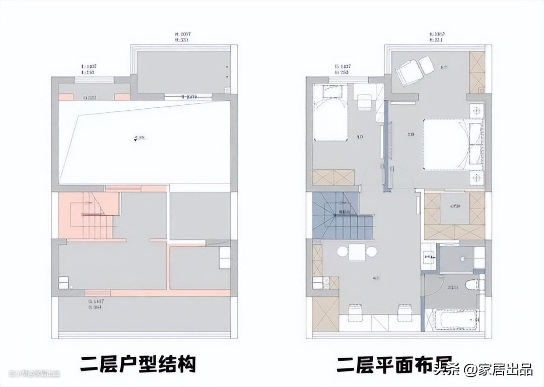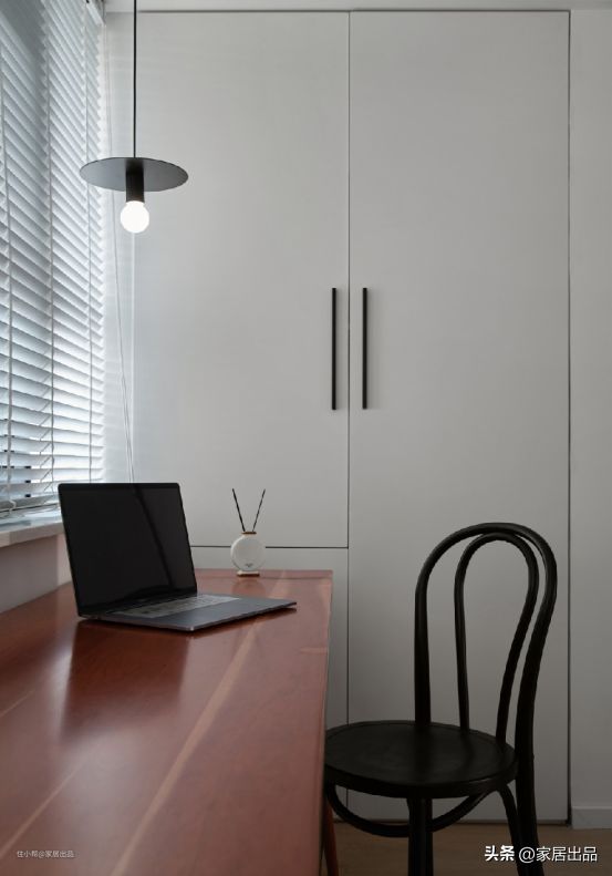 二层则打造成了主人家的专属空间,开放式书房设置在楼梯右侧,安静舒适,紧邻卫生间,避免上个厕所还得跑上跑下。主次卧并排,都拥有良好的采光条件,步入式衣帽间满足了女主人的梦想。