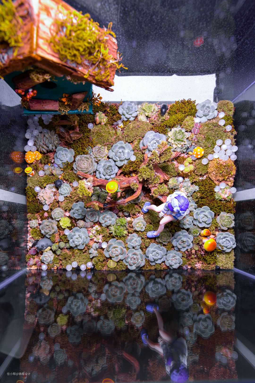⑦:将原有入户的鞋柜空间改为了存放多肉的雨林缸,将多肉做成了一组景观~