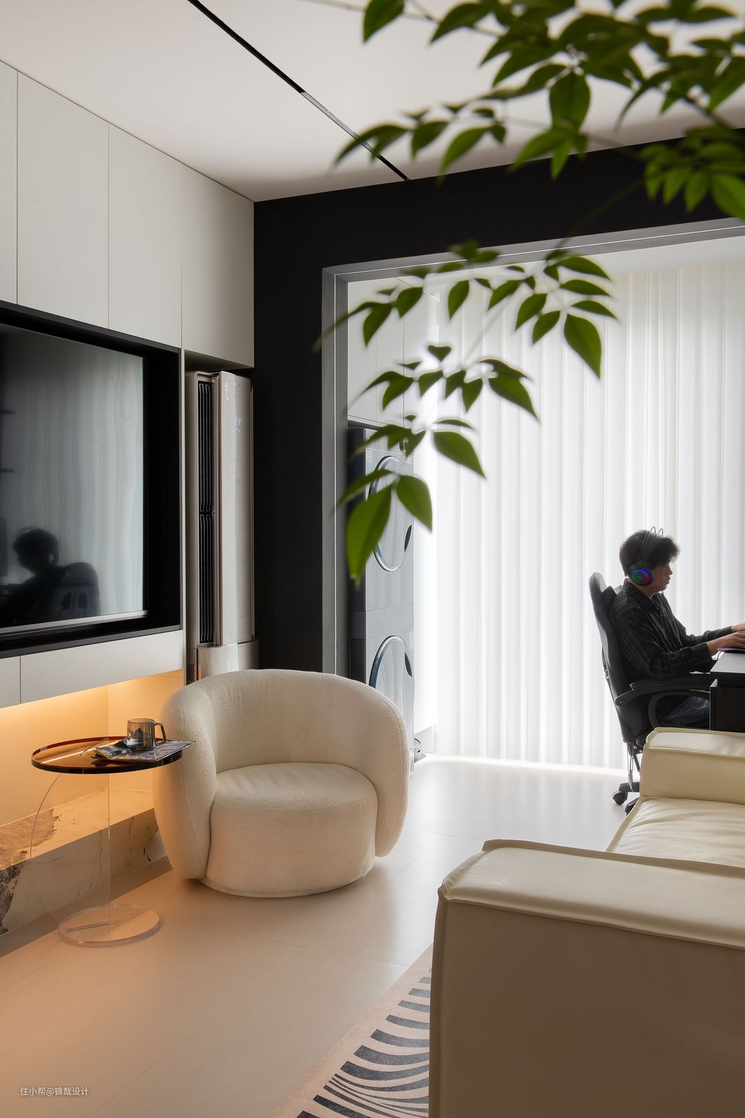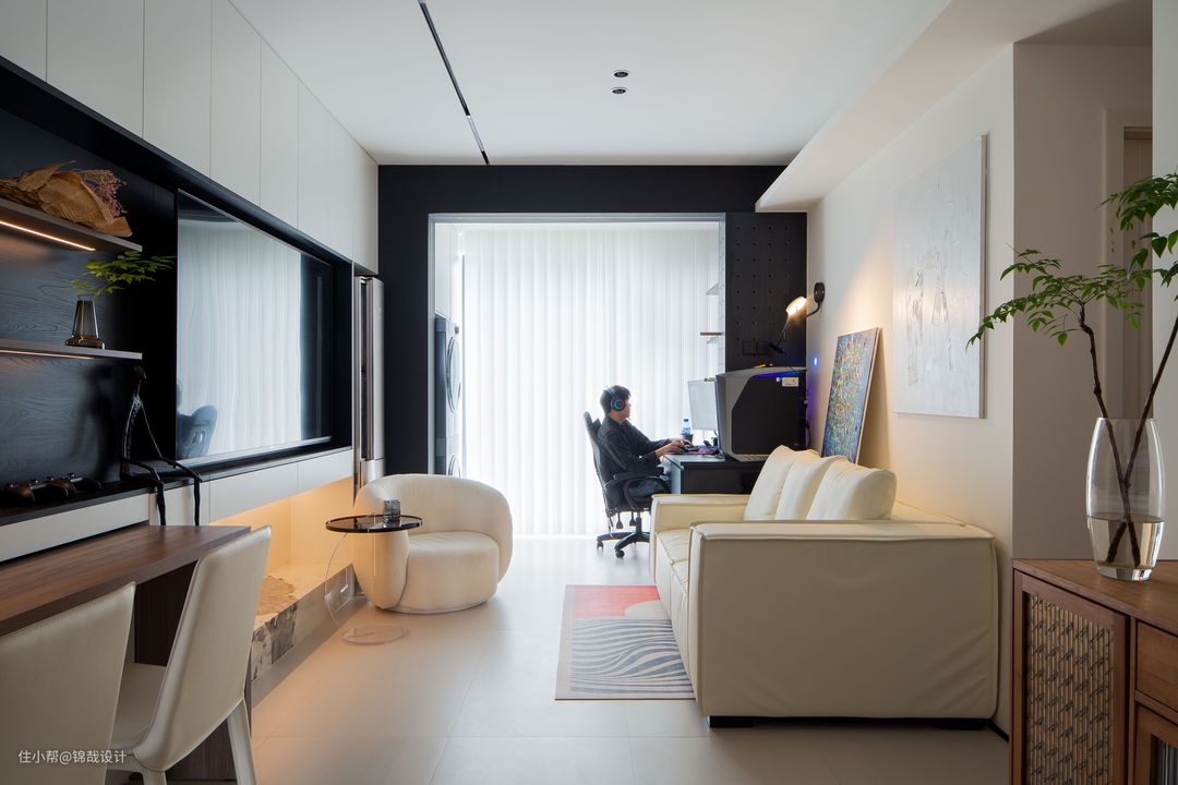 ①:最让男主兴奋的当属阳台的电竞空间,电竞区域设置了氛围灯带,让业主在游戏场景中可以身临其境酣畅淋漓、加倍刺激的电竞体验。