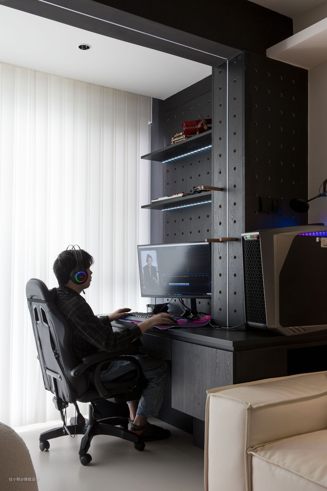 ①:业主是一个电竞游戏博主,经常晚上工作,需要有一个很好的游戏工作环境~