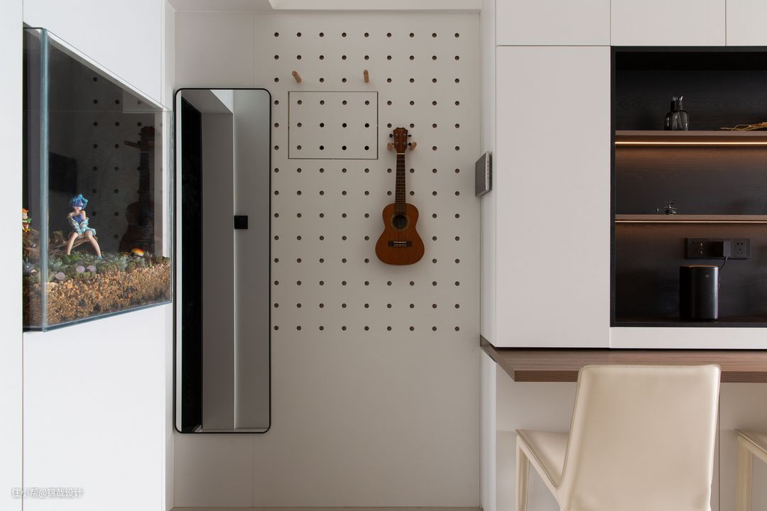 ②:将墙面改为了洞洞板,利用插销可以增加入户的储物空间,可以把包包、钥匙等物品收纳在墙面。