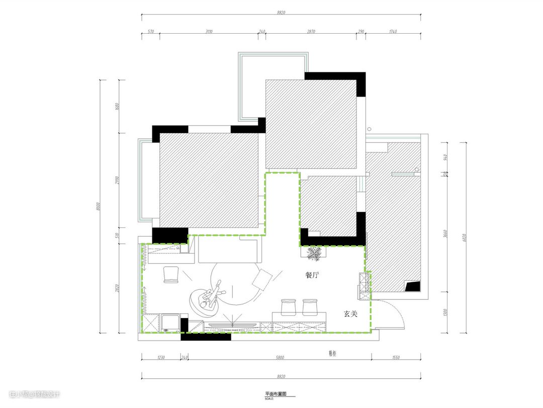 改造后平面图【绿色虚线为改造区域】