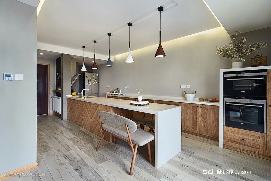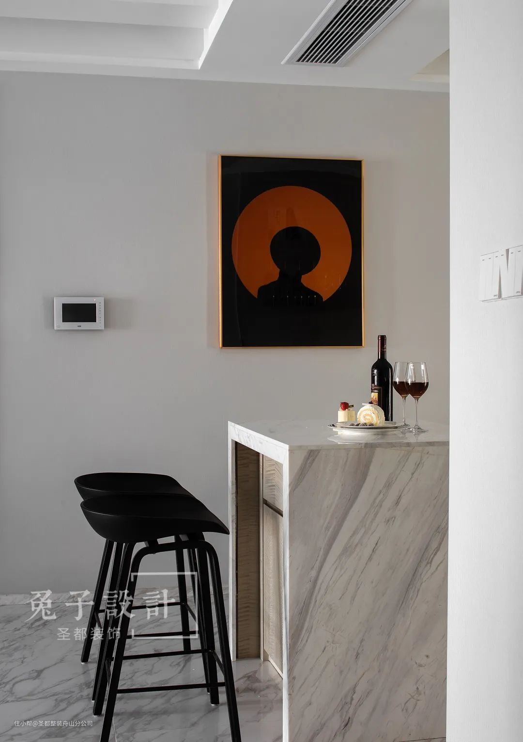 小小一方吧台,不占空间又有情调。它也不挑地方,可以设计在厨房、客厅、餐厅、窗边。闲暇时,或来杯咖啡,或小酌几杯,气氛就有了。