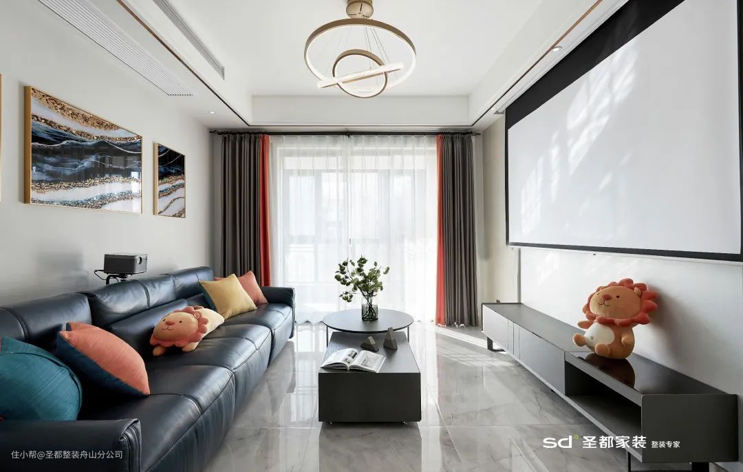 作为家里的核心区域,客厅如果面积还算宽敞,可以根据家庭成员的需求,设计成兼具“休闲/阅读/亲子活动”的多功能厅。
