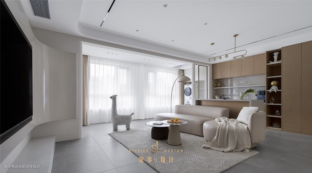 越多越多人喜欢大横厅,这并非是没有理由的,如果你家也是这种户型,咱们没必要沙发一定要靠墙,在其后即可设其他的功能区,比如: